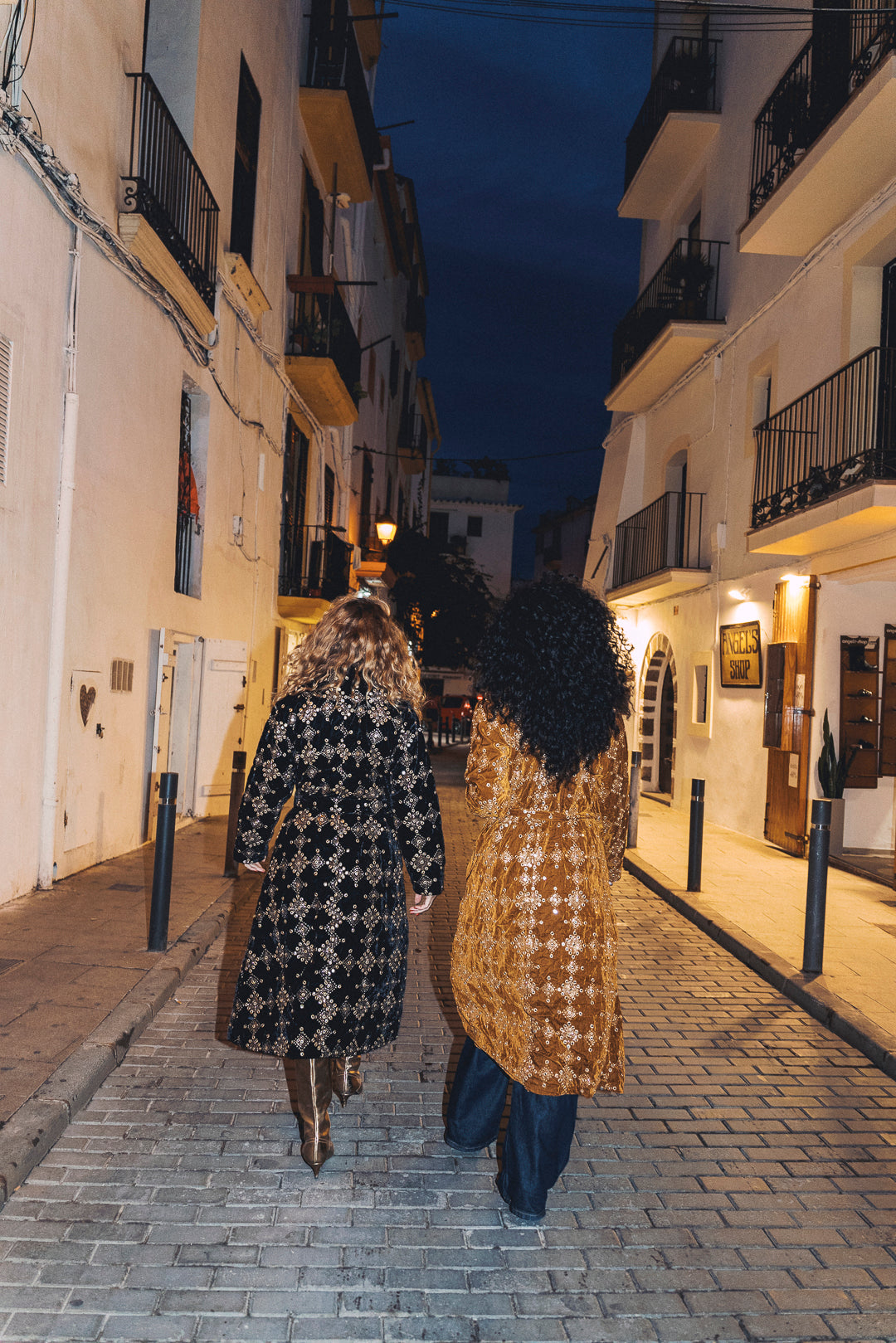 The Empress. Own the pavement in our 1970’s velvet duster coat with tie waist belt fastening. Made with premium crushed velvet adorned in gold embroidery with sequin mirrors