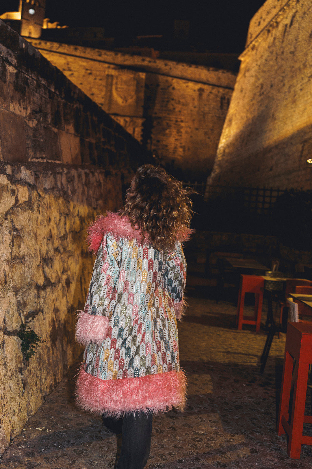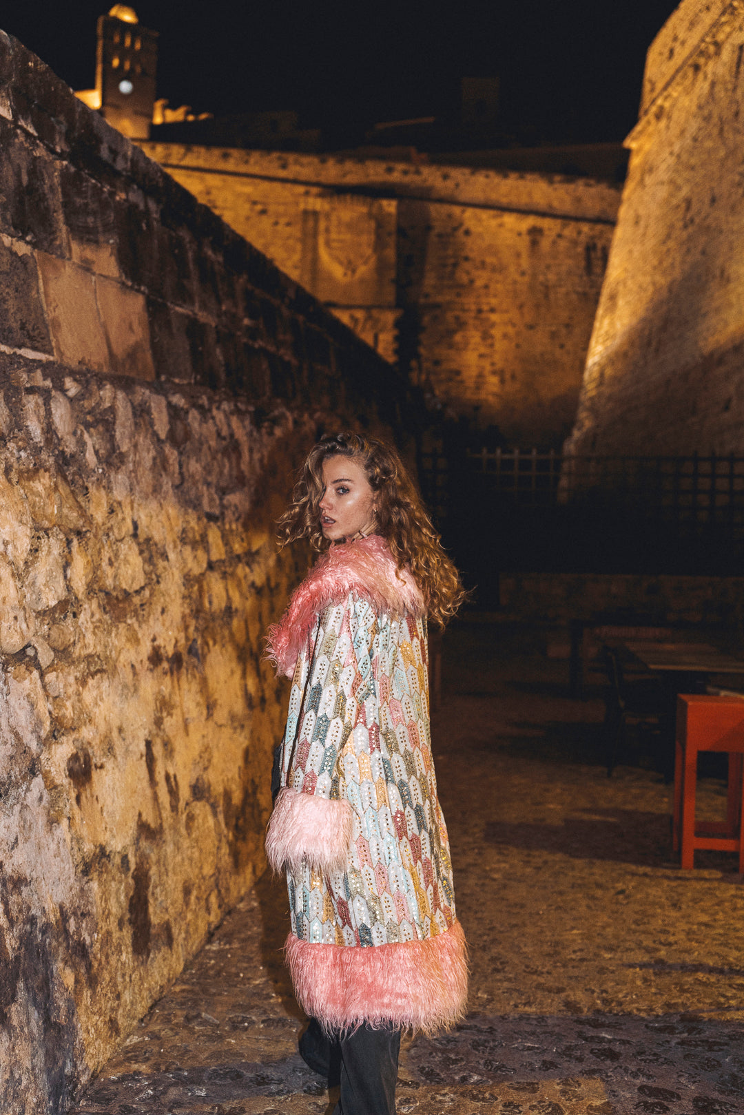 Elegance with a lower impact. The Royal Embroidered Duchess Coat is crafted entirely from surplus materials—every thread, every panel, every detail repurposed with purpose. In a pastel baby blues and pinks, it features intricate embroidery and is trimmed with ultra-soft faux fur in a coral peach at the collar, cuffs, and hem. Lined with silky, high-grade surplus satin, this coat brings together luxurious feel, dramatic silhouette, and thoughtful sustainability. Made for those who believe style and responsibility should go hand in hand.