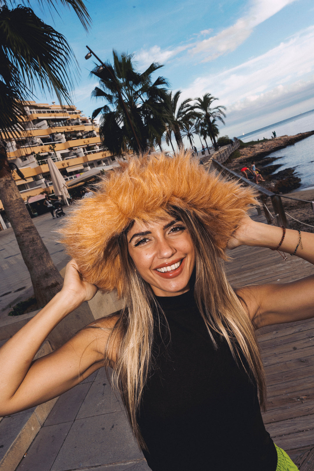 Faux fur hat. Uber fluffy and mega floofy bucket hat in crazy camel coloured fur. OOTO are campaigning to see fields of fluffy heads and fuzzy hearts this festival season...